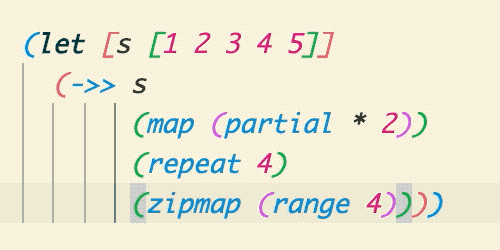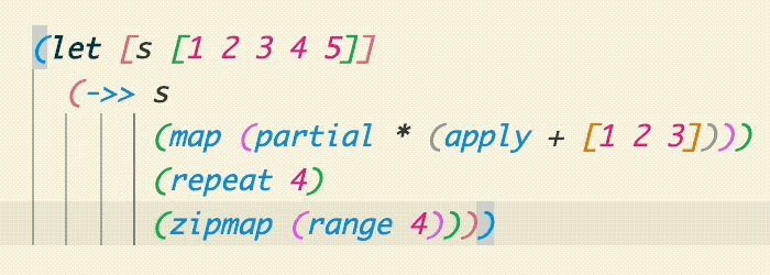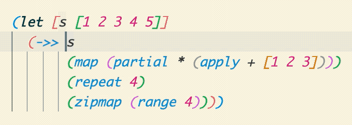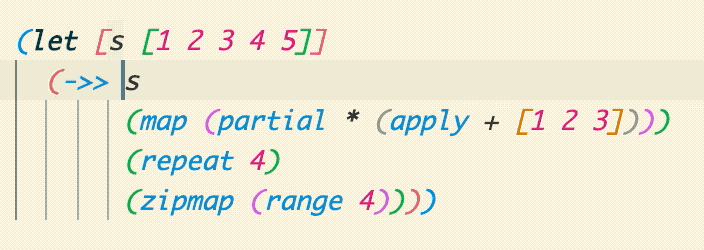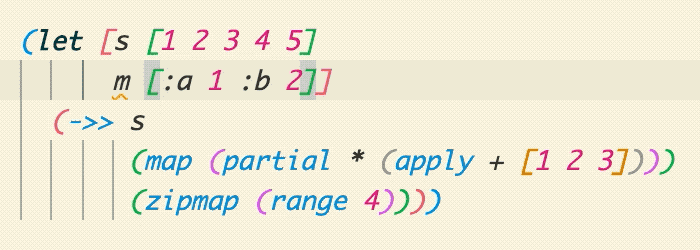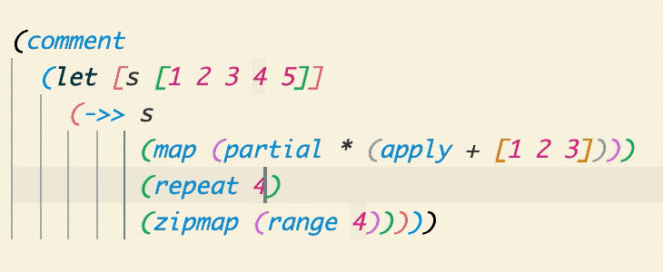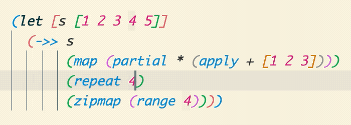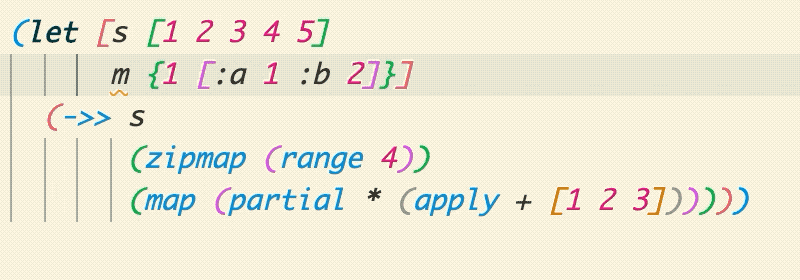 When dragging forms inside maps and binding boxes, such as with let, for, binding, etcetera, it often makes most sense to drag each binding as a pair. And this is what Calva will do. Like so: