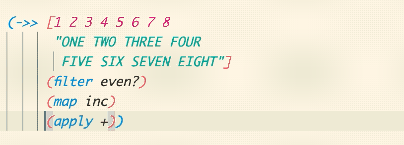 Calva Paredit helps you navigate, select and edit Clojure code in a structural way. LISP isn't line or character oriented, it is based around S-expressions, a.k.a forms. We strongly recommend that you take advantage of the structural nature of Clojure, and have therefore put a lot of work into making Calva Paredit extra awesome.